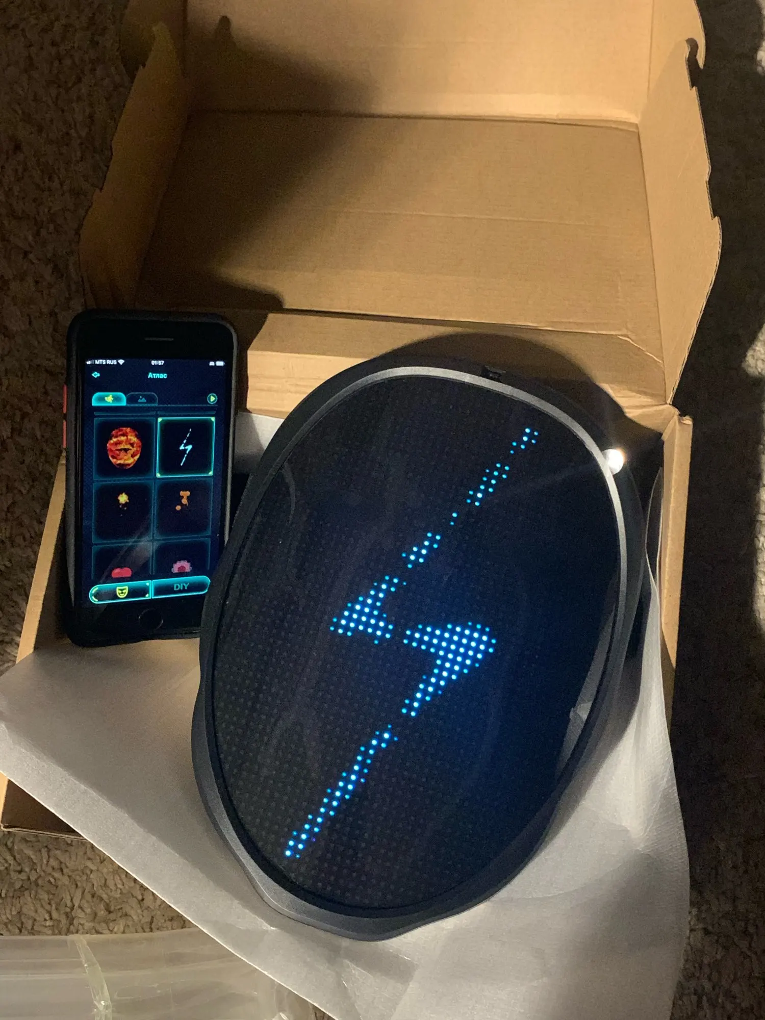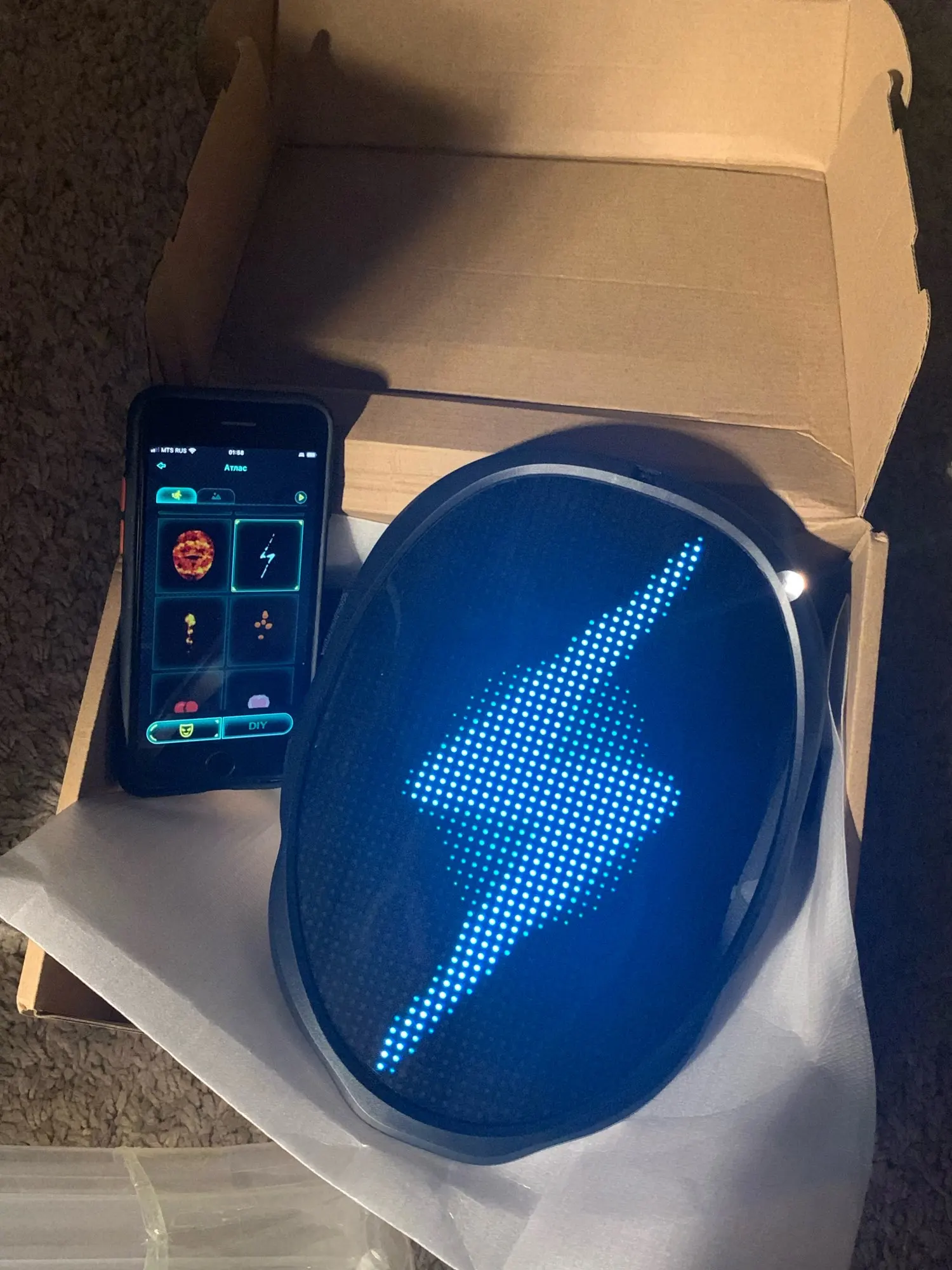 Als wäre dies nicht schon genug, kann die Maske auch Schriften zeigen und geschriebenes durchlaufen lassen! Oder mal gar keine lust ein Motiv zu zeigen? Dann lass die Maske einfach zum Rhythmus der Musik Tanzen!