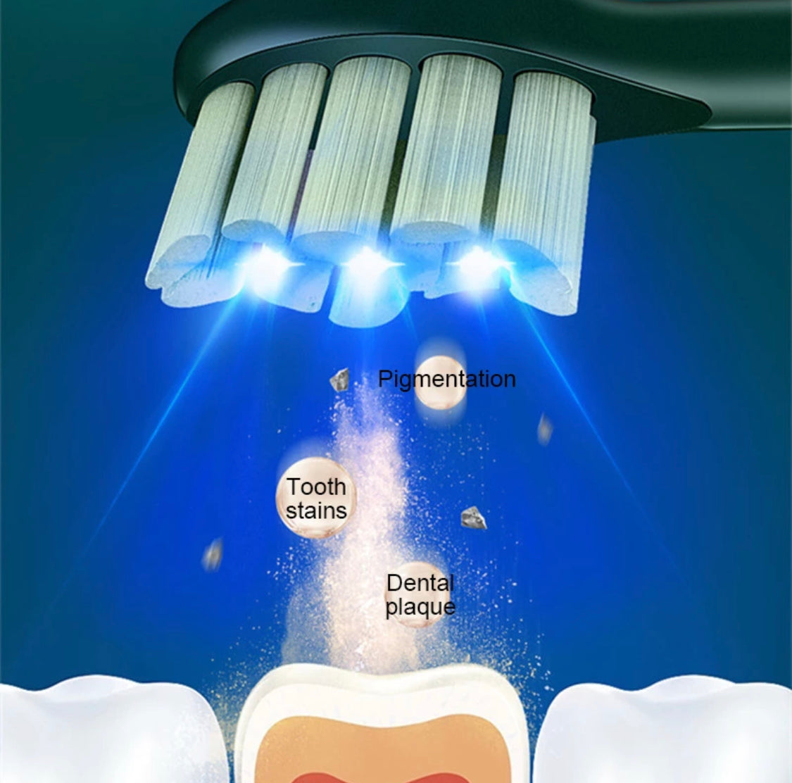 Mit der elektrischen Bleaching Zahnbürste werden deine Zähne im Handumdrehen weisser! Durch angenehmes Vibrieren starten Sie mit einem frischen Lächeln in den Tag.