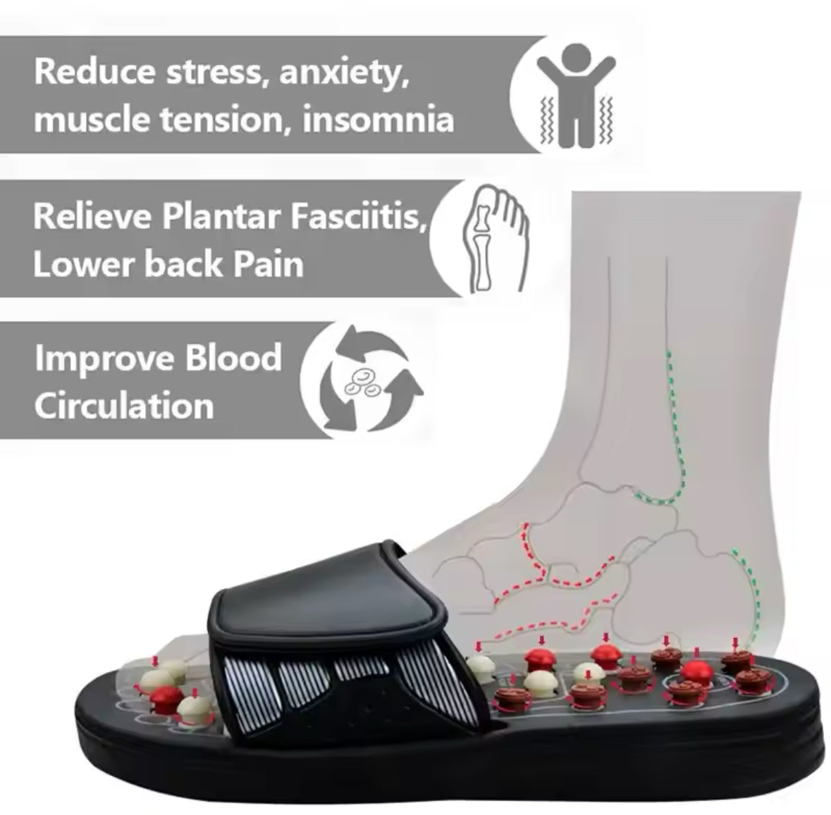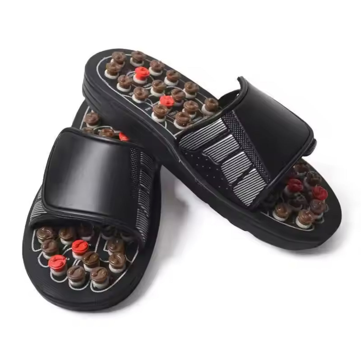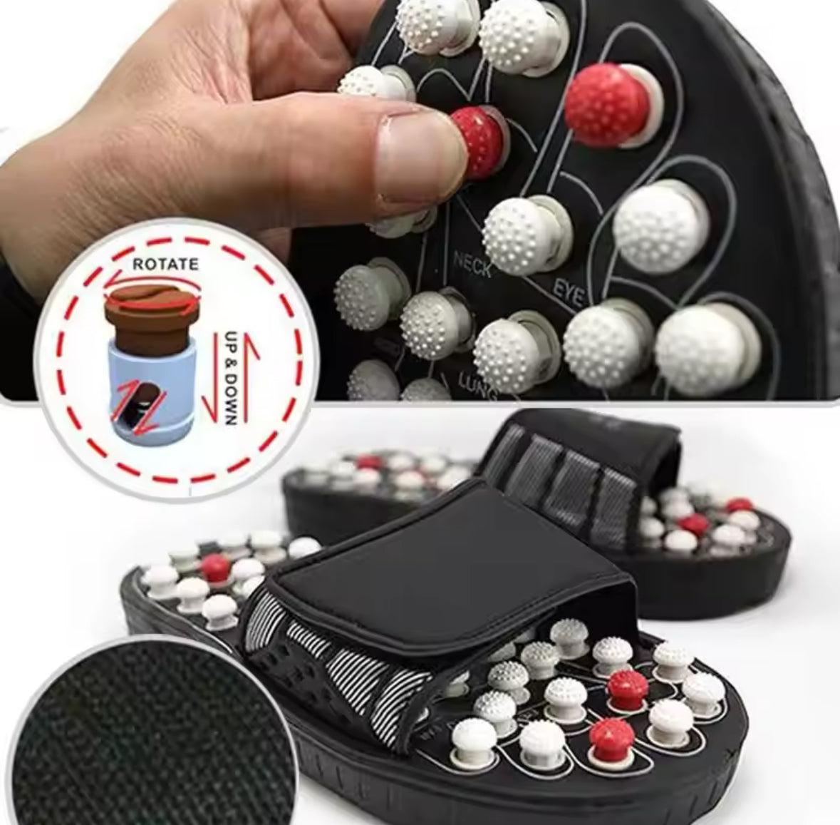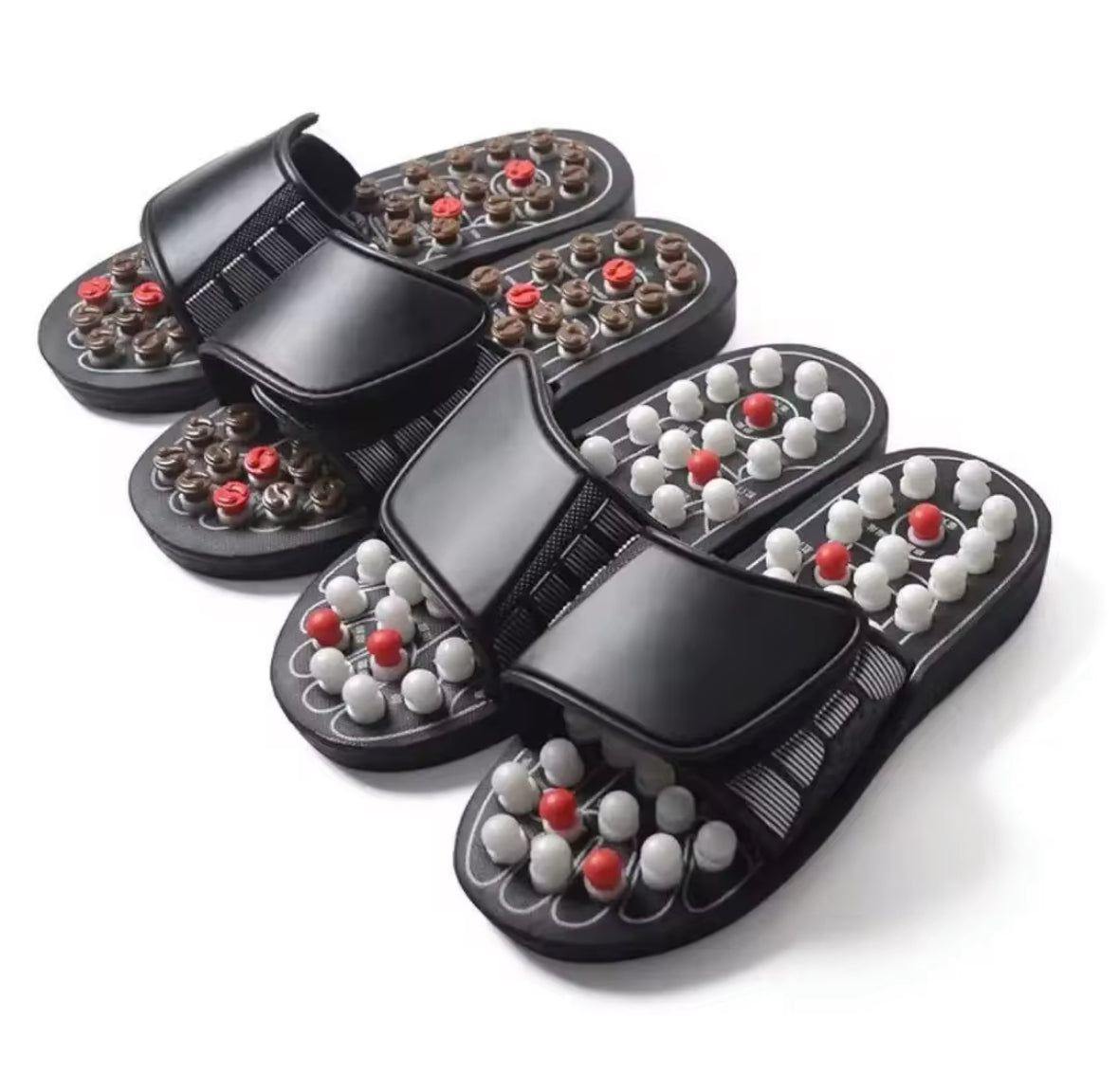 Erleben Sie mit den Fuss Reflexzonen Massage Schlappen die wohltuende Akupressur Therapie und starke Dämpfung für Ihre Füsse. Die beweglichen Massage Noppen stimulieren die Reflexzonen und sorgen für Gemütlichkeit und Gesundheit, ob draussen oder im Wasser. Holen Sie sich diese bequemen und vielseitigen Hausschuhe für entspannte Füsse.
