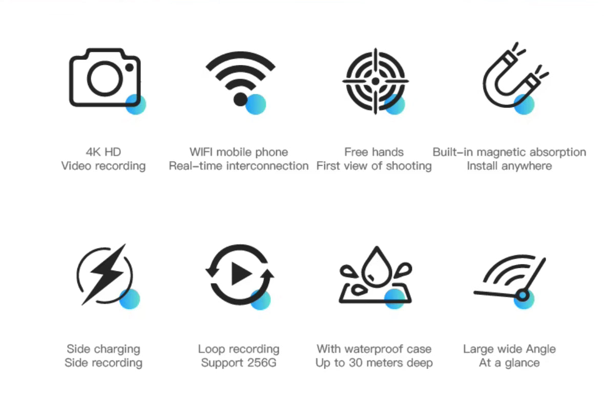 Erleben Sie grenzenlosen Outdoor-Spass mit der Sport Action Kamera. Dank magnetischer Befestigung und automatischer Bildstabilisierung nehmen Sie mühelos gestochen scharfe Videos in 4K und klaren Ton auf. Die Kamera ist bis zu 30 Meter wasserdicht und liefert bis zu 120 Minuten ununterbrochene Aufnahmen.